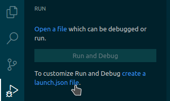 Stop the Django development server with CTRL-C and click on the VS Code “”Run” left pane. There you’ll see a create a launch.json file link.